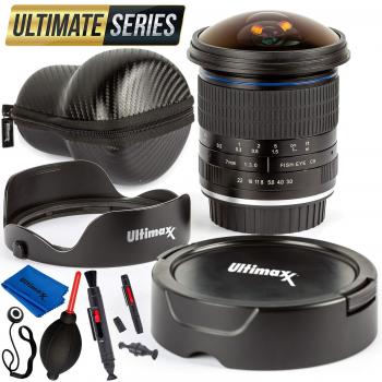 Ultimaxx 7mm f/3 HD Aspherical Fisheye Lens & Removable Hood Kit for Canon EOS 90D,80D, 77D, 70D, 60D, 60Da, 50D, 7D, T7i, T7s, T7, T6s, T6i, T6, T5i, T5, SL1, SL2 and SL3 Digital SLR Cameras