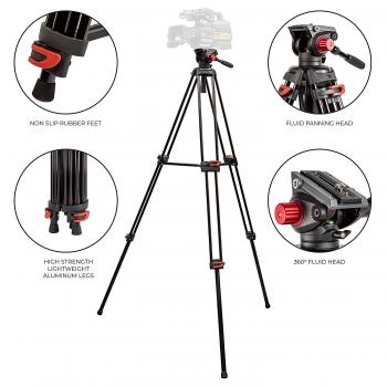 Ultimaxx 72 inch Professional Heavy Duty Aluminum Twin Tube Tripod with Dolly