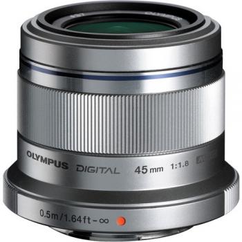 The silver M. Zuiko Digital ED 45mm f/1.8 Lens from Olympus has been designed for use with Olympus PEN Micro Four Thirds cameras. With an equivalent focal length in the 35mm format of 90mm, this short telephoto lens is ideal for portraits and for low-light shooting. Its extremely wide f/1.8 maximum aperture can produce beautifully shallow depth of field and is very effective in low-light situations. Its Movie & Still Compatible (MSC) function offers ultra-fast, near-silent autofocus for shooting stills and video. Lens construction using extra-high refractive lenses produces excellent contrast and sharpness in stills and video, with chromatic aberration, ghosting and flare minimized.