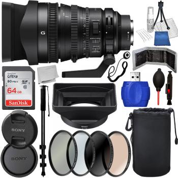 Designed to satisfy 4K production requirements, the Sony FE PZ 28-135mm f/4 G OSS Lens is a wide-ranging zoom lens that covers wide-angle to telephoto perspectives while adding many features for your full-frame, APS-C, or E-mount camcorder or still photography camera system. The lens features a powered zoom control with a variable speed and zoom rotation direction reversal capability. Powering the zoom function is an SSM (Super Sonic wave Motor) drive that allows precision and quiet operation. Focus noise is also minimized through weight reduction of the focus element group and use of a linear motor. Iris function is also designed to be smooth and silent for cinematography demands.