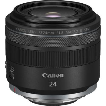 The RF24mm F1.8 MACRO IS STM wide-angle, fixed focal length lens affordably expands your options with the EOS R System. Great for still photography and videography, the FL24 can provide drama in your still images, and has a wide field of view for vlogging, while still maintaining a natural look. The bright f/1.8 aperture also does wonders for your images. Not only can you achieve beautiful, soft backgrounds, but you can shoot in more available light situations than you could with a slower lens.The RF24mm F1.8 MACRO IS STM also comes with built-in Optical Image Stabilization to further enhance your low-light shooting abilities by providing up to 5.5 stops* of shake correction, and up to 6.5 stops with coordinated IS. The RF24mm F1.8 MACRO IS STM is surprisingly light and compact while still providing a very solid feel. Another unexpected feature of this lens is its close-focusing capability. It can focus continuously down to half life-size magnification making this prime lens even more versatile. No matter what you end up doing with this lens, you will be rewarded with high-quality images that can take photography to the next level.Features:Wide-angle, fixed focal length lens that affordably expands the EOS R system.Fast F1.8 maximum aperture for great control over depth of field and bokeh, low-lightshooting and video recording, with fast and reliable autofocus.Excellent image quality: highlights include a UD (Ultra-low Dispersion) glass element, oneaspheric element, and Canon SSC (Super Spectra Coating) to minimize ghosting and flare.Minimum focus distance of approx. 5.5 In./0.14 m; close-up magnification 0.5x at minimumfocus distance.Optical image stabilization up to 5.5 stops* of shake correction. Up to 6.5 stopsCoordinated IS when paired with EOS R series cameras featuring In-Body Image Stabilizer(IBIS).Canon STM (stepping motor) focus drive is especially suited for smooth, quiet video AFoperation, even in low light.Dedicated, programmable Control Ring, with click-stop operation.Impressively compact and light at only 0.6 lbs/270g.Circular (9 blades) aperture for beautiful, soft backgrounds.