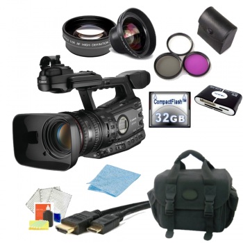 1)Canon XF305 Professional PAL Camcorder 2)0.45 x Wide Angle Lens 3)2x Telephoto Lens 4)3 Piece Filter Kit Includes: UV, Circular Polarizer and Flourescent Filter 5)32GB Flash Memory Card 6)High Speed Multi Memory Card Reader 7)Soft Carrying case 8)Microfiber Cleaning Cloth 9)Mini HDMI Cable 10)Pack of LCD Screen Protectors 11)Lens/LCD Cleaning Kit
