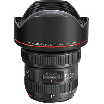 A truly versatile wide-angle zoom featuring an advanced optical design and constant f/4 maximum aperture, the Canon EF 11-24mm f/4L USM Lens is a member of the esteemed L-series of lenses designed for full-frame EOS DSLRs. One Super UD element and one UD element offer a significant reduction in chromatic aberrations while four aspherical elements help to minimize distortions throughout the zoom range and provide consistent edge-to-edge sharpness and illumination. Both SWC and ASC coatings have been applied to the elements in order to reduce lens flare and ghosting for increased contrast and color accuracy. Ideally suited for landscape and architectural photography, this lens covers ultra-wide to wide-angle perspectives and backs up its versatile zoom range with sophisticated optical components and intuitive handling.