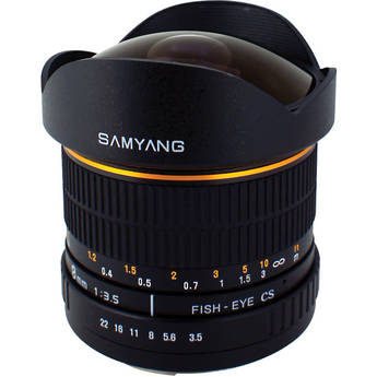 The 8mm Ultra Wide Angle f/3.5 Fisheye Lens for Canon Mount from Samyang gives you a 180 view with dramatic, exaggerated perspective. With a hybrid aspherical lens and multi-layer coating, you can produce sharply defined images with a minimum of flare and ghosting. The 8mm lens focuses as close as 1' (30.48 cm) from the lens, and has a built-in petal lens hood.