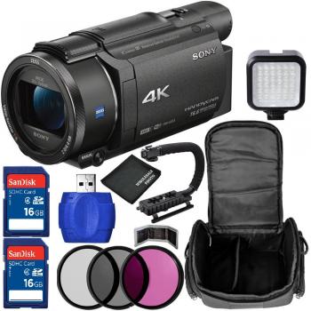 The Sony FDR-AX53 from SLR Hut is a palm-sized Handycam camcorder that combines a Zeiss 20x optical zoom lens and a high-sensitivity image sensor to produce crisp and high-quality UHD 4K video. The Exmor R CMOS image sensor supports UHD 4K video capture at 24 or 30 fps using Sony 's XAVC S codec and features pixels that are approximately 1.6x larger than the previous model for enhanced performance in all conditions, particularly low-light scenarios. The camcorder also features Sony 's Balance Optical SteadyShot image stabilization technology to help produce smooth and stable footage throughout the zoom range. Further enhancements include improved autofocus speed and accuracy, a lower-noise built-in microphone, and a high-speed 1080p 120 fps recording mode to create high-resolution slow-motion content.